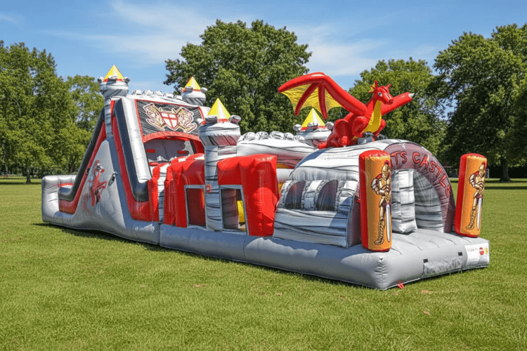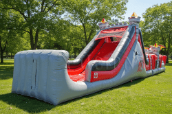 Prepare for an epic adventure with the 52 ft Dragon's Lair Obstacle Course! Spanning a massive 52 feet, this inflatable maze offers twists, turns, and challenges galore. Scale walls, dodge obstacles, and race against friends, all while feeling like you're in a medieval dragon's cave. Perfect for parties, events, or just a day of thrilling fun!