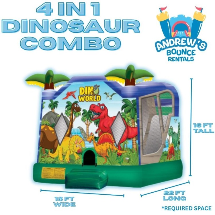Jump back into prehistoric times! Gather all your friends for some dino play with triceratops and stegosaurus. The higher you jump, the more dinos you'll see! The brachiosaurus is as tall as the trees, and the pterodactyls fly high in the sky.